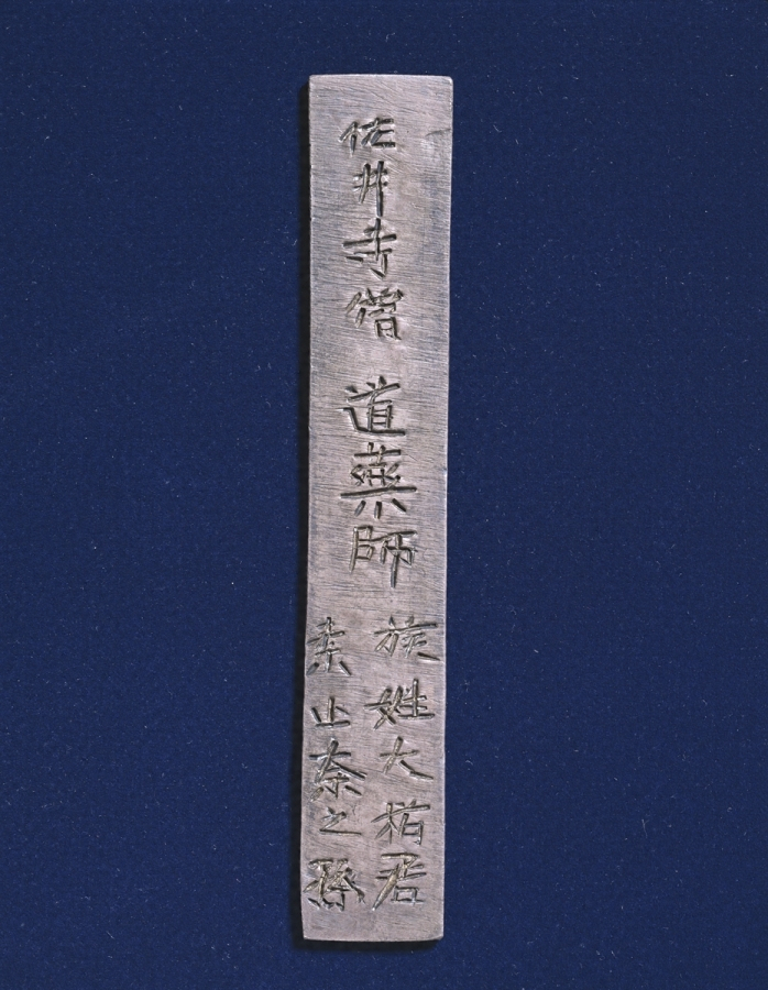 昭和三十三年奈良県天理市で出土したもので、和銅七年佐井寺僧道薬の銘のある銀製墓誌と骨壼とよりなる。墓誌を伴う奈良時代火葬墓の遺品として貴重であるうえに、銀の墓誌は他にまだ類例をみない点で大きな意義をもつ。僧道薬についてはまだ史上明らかでない。