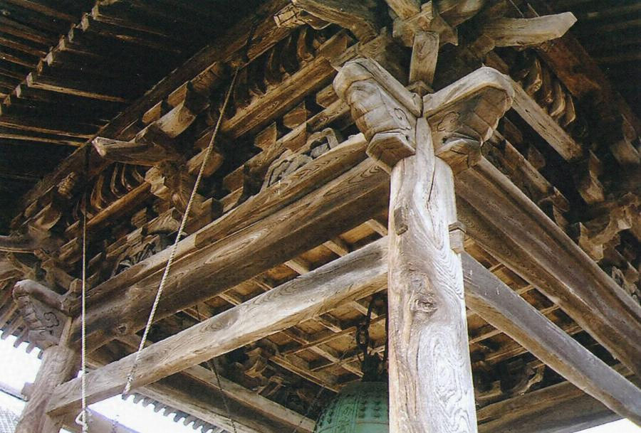 本堂の東南に位置する。切石積基壇に建つ桁行1間梁間1間の吹放ち鐘楼。入母屋造桟瓦葺。礎盤に粽付円柱を内転びにたて、貫や台輪で固め、尾垂木付二手先斗栱を組む。柱間中央にも斗栱を置き、その間に蟇股を飾る。二軒繁垂木。近世建立になる良質な鐘楼。