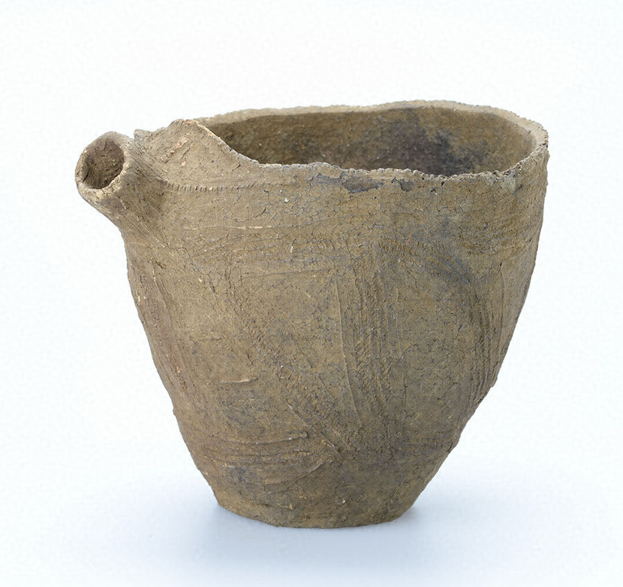 後北C2・D式の注口土器。土坑墓に副葬されたもので、出土時は注口部が内側に向けられ、正立の状態であった。