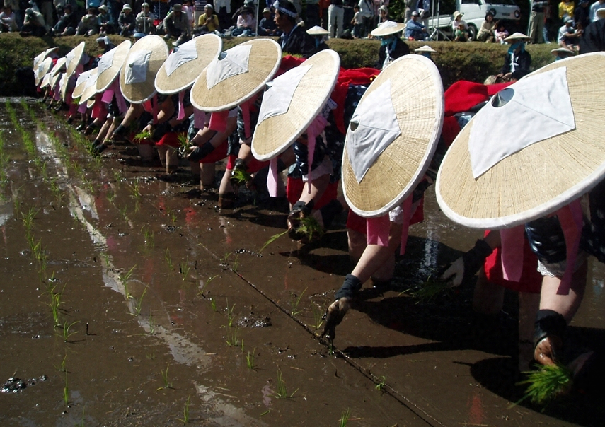 はやし田は、六月中旬ごろサンバイ様(田の神)を田に迎え、部落全体が共同して行う田植行事で、多くの田植歌や囃子が奏せられる。広島県北部一帯から石見、出雲などに広く分布し、花田植などと称する所もある。