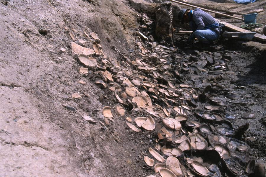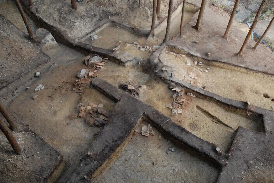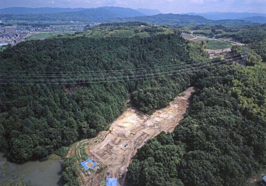 神雄寺跡は,木津と奈良の平野部を画する奈良山(ならやま)丘陵の北東端に位置する8世紀中頃から9世紀初頭に営まれた山林寺院である。発掘調査の結果,天神山(てんじんやま)丘陵南斜面に,流路と建物5棟,井戸1基などが検出された。丘陵裾部には平坦面を造成して,須弥壇(しゅみだん)をもつ礎石建(そせきだ)ちの小型の仏堂と方一間の小型の多重塔(たじゅうとう)もしくは多宝塔(たほうとう)が建てられた。谷部には,仏堂と中心軸を合わせて東西3間,南北2間の掘立柱(ほったてばしら)建物の礼堂(らいどう)及び流路が配置された。これらの建物は8世紀中葉に建立され,塔のみが10世紀まで存続したが,他は9世紀初頭までには廃絶した。谷部の流路からは,5,000点以上の灯明皿(とうみょうざら),少なくとも上二句が『万葉集』に所収されたものと一致する歌が書かれた歌木簡,楽器,彩釉(さいゆう)山水陶器,緑釉及び三彩陶器,墨書土器などが出土した。これらの遺物からは,歌の詠唱を伴う儀式や燃灯供養(ねんとうくよう),悔過法要(けかほうよう)などの仏教儀礼が行われたと考えられる。また流路からは,神雄寺と書かれた墨書土器が多数出土し,文献には認められないが,寺の名称は「神雄寺」であり,「かみおでら」のほか「かんのうでら」,「かんのうじ」,「じんゆうじ」,「かむのをでら」などと呼ばれていたと考えられる。神雄寺跡は遺構と遺物が良好に遺存しており,そこで行われた仏教儀礼の在り方を知ることができる全国的にも稀な寺院跡であり,奈良時代の仏教の展開を考える上でも重要な遺跡である。