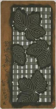 この型紙は(1括2071枚)は,中村重蔵氏(1888-1964)が蒐集,中重コレクションとして知られてきたものの一部である。小紋,中形のほかに更紗の型紙も含まれている。ここには年記のあるもの,およびその他の中から一部の写真を掲載する。〈 〉内の数字はコレクションの各紙に付せられていた整理番号を示す。