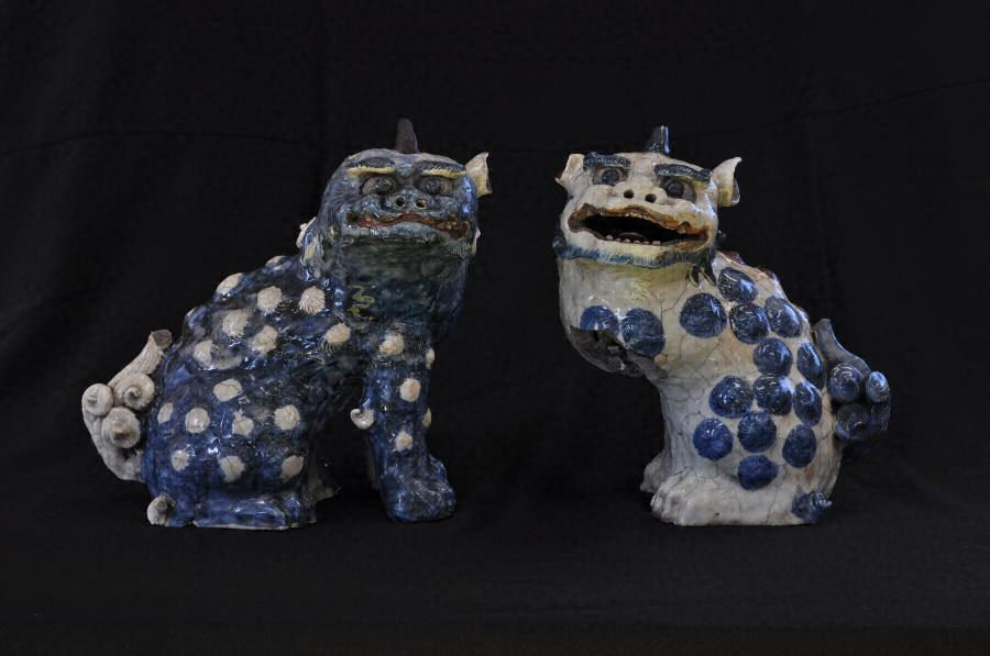 美濃では19世紀初頭に磁器生産を開始し、滝呂神明神社磁器狛犬が製作された19世紀中葉は、磁器の生産量が急増していく時期である。また、滝呂では、京都の聖護院より「滝呂焼」の銘を受け御用焼を焼いており、幕末には奈良茶碗350人前を聖護院に納めたという文書も残されており、質の高い磁器製品を製作することが可能な地域だった。滝呂神明神社磁器狛犬には製作者が記されていないため、どこで製作されたかは定かではないが、そのような歴史的背景のもと、これらの磁器狛犬は製作され、滝呂神明神社に奉納されたものとみられる。