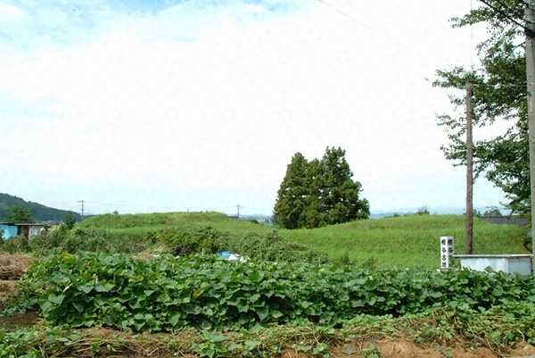 字櫻谷ノ丘陵上ニ畧完形ノ古墳二個アリ封土ハ何レモ三段ニ築カレ一ハ柄鏡式古墳ニシテ他ハ前方後円型ノ古墳ナリ柄鏡式ノモノハ東北ニ面シ長徑約二十四間後円部ノ徑約十五間高サ約十七尺前方部ハ約六間高約六尺アリ嘗テ後円部ノ土中ニテ石釧及ヒ紡■車ヲ發見セリ