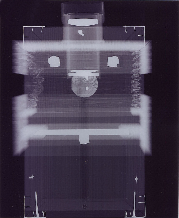 木製鏡筒のレンズや内部の釘の形状などにより、初期の国産のものであることが推測できる湿板カメラ。Ⅹ線写真によると前に一枚、後ろに二枚のレンズが確認され、初期の国産カメラとしては最も多いレンズ構成を持つものであることが分かった。カメラ後部は湿板特有の硝酸銀による汚れが目立ち、かなり使用した形跡が認められ、佐賀藩の科学研究施設であった精煉方で使用された可能性も考えられる。佐賀藩における写真術研究の詳細は明らかになっていないが、安政6年(1859)、藩医川崎道民撮影と箱書きされた藩主鍋島直正公の湿板写真も現存しており、写真術研究が進んでいたことがうかがわれる。
