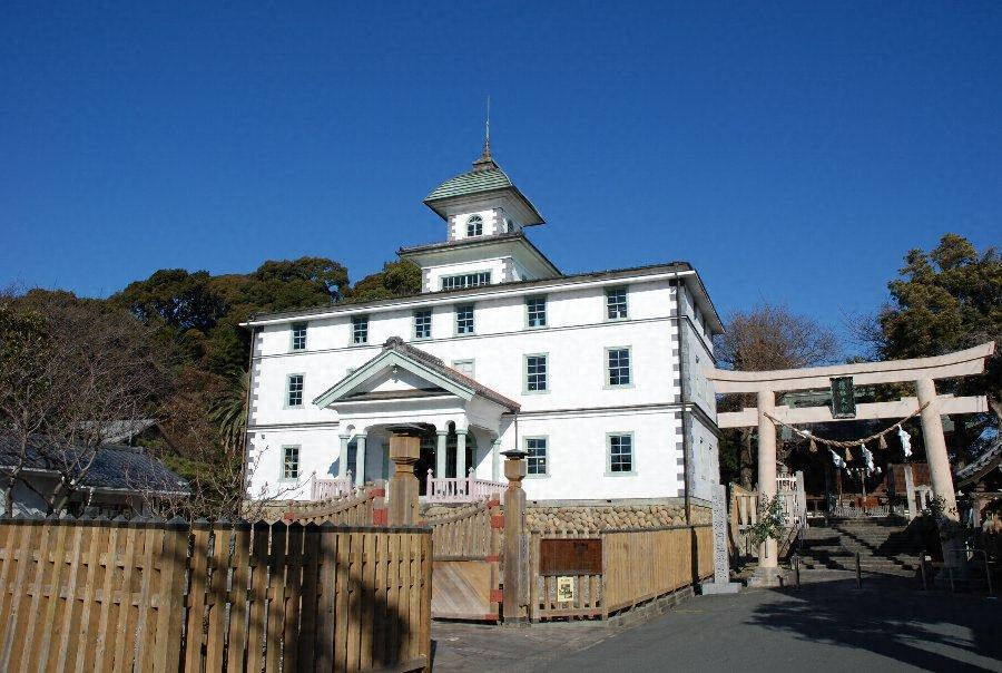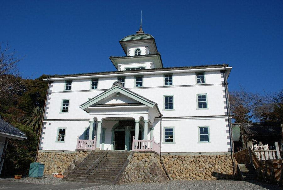 S43-12-008旧[[見付]みつけ]学校(附磐田文庫).txt: 見付学校は、明治5年の学制発布をうけ、明治7年10月着工、8年7月落成した日本でもっとも古い小学校の一つである。学制によって、浜松県は第2大学区に属し、見付は第2大学区の「第12番中学区第1番小学」あるいは、浜松県の「第2中学区第1番小学」と称された。はじめ寺院を仮校舎としたが、淡海国玉神社より境内地の寄附をうけ、磐田文庫に隣接する地に校舎を建設し、明治8年7月、落成とともに直ちに学校を寺より移転したのである。もと磐田文庫は国玉神社の神官大久保忠尚の設立したもので、遠州国学の象徴であり、学校設立者の一人古沢脩はその門生であり、忠尚の女婿忠利は学校用地として境内地を浜松県会に寄附し、また文庫の蔵書の一部を学校に寄附するなど、いわば見付学校の設立そのものが、遠州国学ときわめて関係ぶかいことを示している。