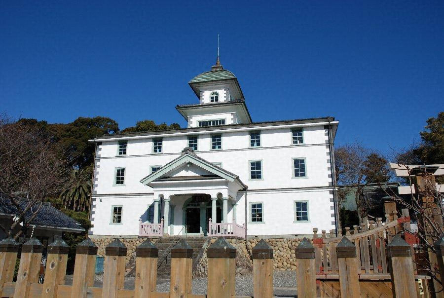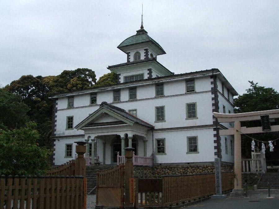 新校舎は、基礎石垣の上に、洋風木造2階建、屋上に2層の楼を重ねた1棟で玄関にはエンタシス式の柱を配し、外壁面は漆喰塗り、床板は斜張りとし、内部は中央階段とし、その左右に教室を設けた。明治16年8月、さらに2階天井裏を改造して3階を増築し、2層の楼をその上にあげ、屋根を寄棟造に改め、ほぼ現状のごとき校舎となった。俗に「見付の5階」と称せられる所以である。