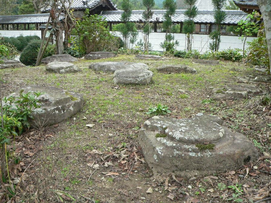 丘陵ノ南面ニ在リテ遺構見ルヘキモノアリ東西両塔阯ニハ土壇及礎石ヲ存シ金堂及講堂阯ニハ礎石ヲ存ス創建年代尚明確ナラサルモ礎石ノ構造遺瓦ノ樣式等ニ依リ奈良朝以前ニ属スト推定セラル今世尊寺ノ地ナリ