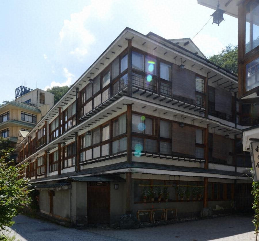 伊香保温泉の石段の上方東側に位置する旅館で、東館は敷地中央に建つ。木造三階建、入母屋造鉄板葺で、外周部はガラス窓と各階の庇を水平に連続させ、大屋根と庇には化粧垂木を付し、要所に庇を貫く化粧丸太附柱をアクセントとし、温泉街の景観に寄与する