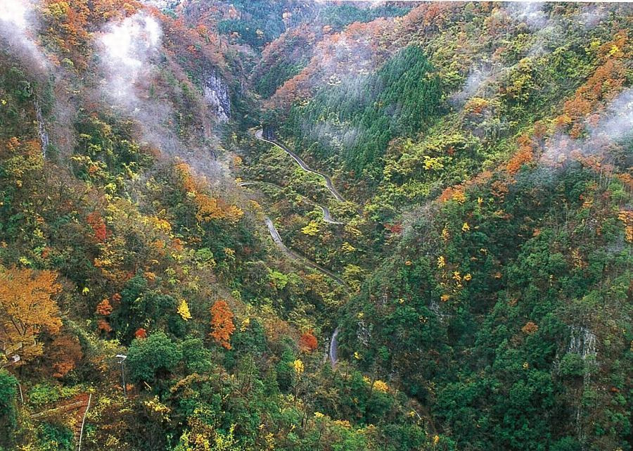 成羽川ノ一支流磐窟川ガ石灰岩ト角岩トヨリ成レル臺地ヲ深ク穿チテ狹キ峽谷ヲ成セルモノニシテ高サ百メートルニ垂ントスル岩壁ハ波状ノ凸凹ヲ成シテ高ク川ノ右岸ニ連リ白獄洞窟獄打獄等ノ諸峰ヲ成ス洞窟獄ノ中腹ニ一鍾乳洞アリモト洞内ニ天磐窟神社ヲ齋祀セリ洞内ヨリハ常ニ一定量ノ水流レ出ツ之ヲ神水川トナス本流ト相合シテ御舎利瀑ヲナシ深キ瀑壺ヲ殘セル御舎利淵ト共ニ峽中景勝ノ中心タリ