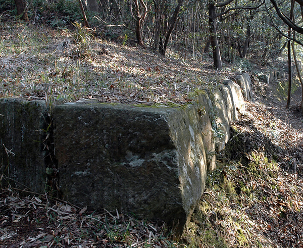 高良山の山腹に存する。2箇所の溪谷を繞って巨大な切石が竝列し、その全長約1550mに達する。列石の東部は高良神社々殿の背後にあり、それより鷲尾嶽附近に至って南面し極楽寺跡より里道に接し勢至堂跡を経、更に西面して降り小沢に臨み県道を越えて虚空蔵堂跡の附近に至って終っている。水門はもと2箇所に存したが、字北谷のものは既に破壞せられ、字神篭石の溪谷にはその跡を存している。