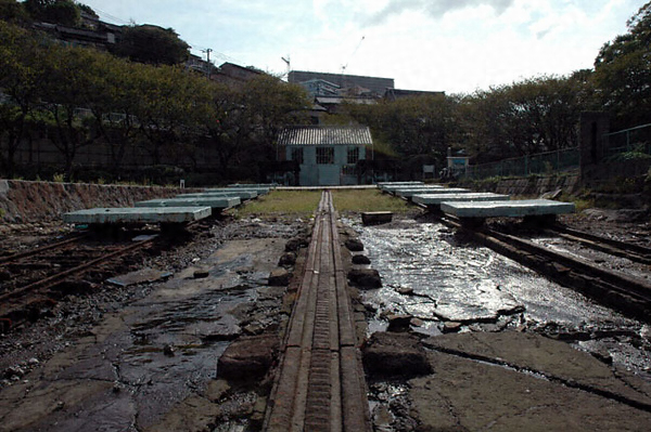 小菅修船場は、入江利用のスリップドックで500トン前後の船を曳揚げ修理を行なった。現在、残っているものは、曳揚小屋、曳揚機械、軌道、石垣などあり、また両岸の天草石の石垣の多くが当初のままであるなど、わが国最初の洋式船架として貴重なものである。