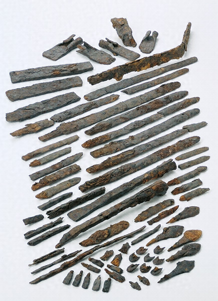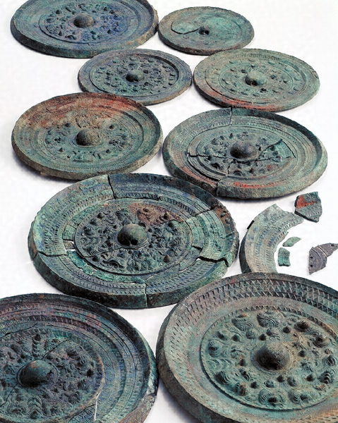 副葬品は、主室から三角縁神獣鏡7面を含む青銅鏡12面、鉄槍2点、短剣4点、小札1点、副室から鉄鏃56点、短剣を含む鉄剣26点以上、鉄刀1点、板状鉄斧3点、袋状鉄斧7点以上、ヤリガンナ8点以上、鉄鑿4点以上、ヤス2点以上並びに紡錘車形石製品1点などがそれぞれ出土した。このほか、後方部の墳頂部を中心に出土した土器に、山陰地域特有の鼓形器台や複合口縁壺などが目立つ点も注目される。
