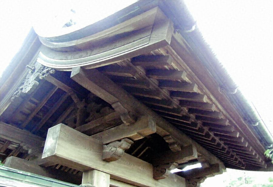 主屋の南東に位置する。一間薬医門、切妻造銅板葺。間口二・六メートルと比較的規模が大きい。両側に板塀を付設し、東側に潜戸を設ける。本柱上、冠木で固め、男梁とその上部に梁を架け、笈形付大瓶束で棟を支持。二軒疎垂木。総欅造で、本格的なつくりになる。