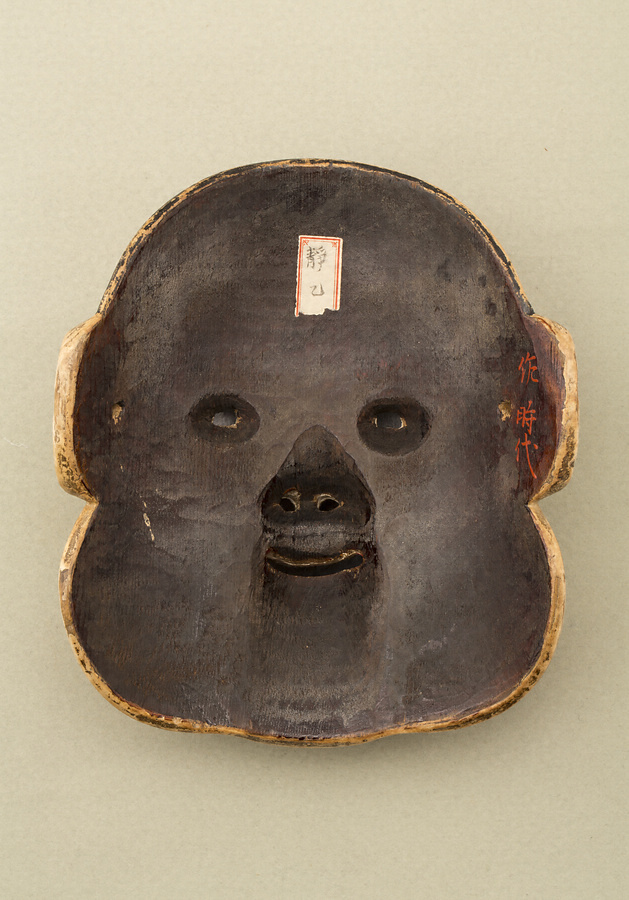 狂言面箪笥入りの十面のうちのひとつ。一連の狂言面は摂津国伊丹の銘酒「白雪」で知られる江戸時代以来の大造酒家・小西新右衛門の旧蔵品であり、大阪美術倶楽部において昭和8年(1933)1月24日に行われた「某家所蔵品入札」の売立目録に掲載される。小西新右衛門は平瀬露香とともに、近代能楽の発展に貢献した後援者でもあり、演者としても知られている。