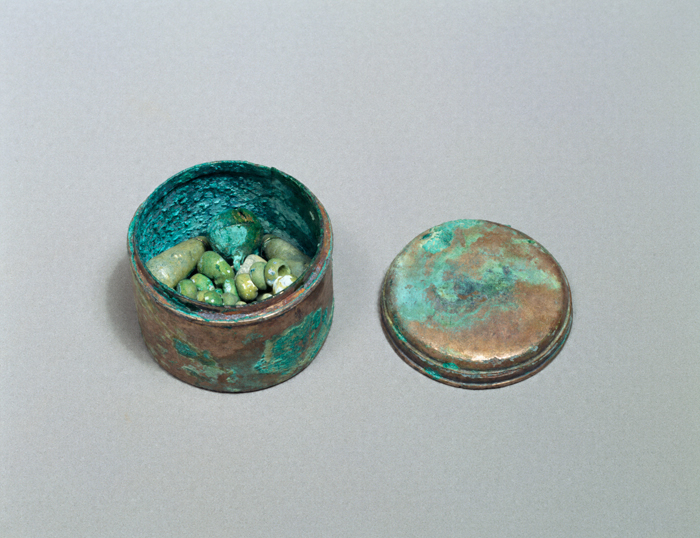 合子(合子内ガラス製珠玉四十六個、露玉二個、金銅鈴一個)
