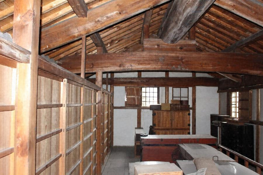 主屋背面側に建ち、敷地の北西隅を画す。土蔵造二階建、切妻造で本瓦葺とする。桁行一一メートル、梁間四・八メートルの規模で、南面には縁を設け、離れや主屋とつなぐ。内部は一階を二室、二階を一室とし、家財道具等を収める。敷地景観を形成している。