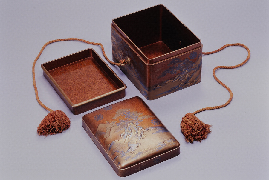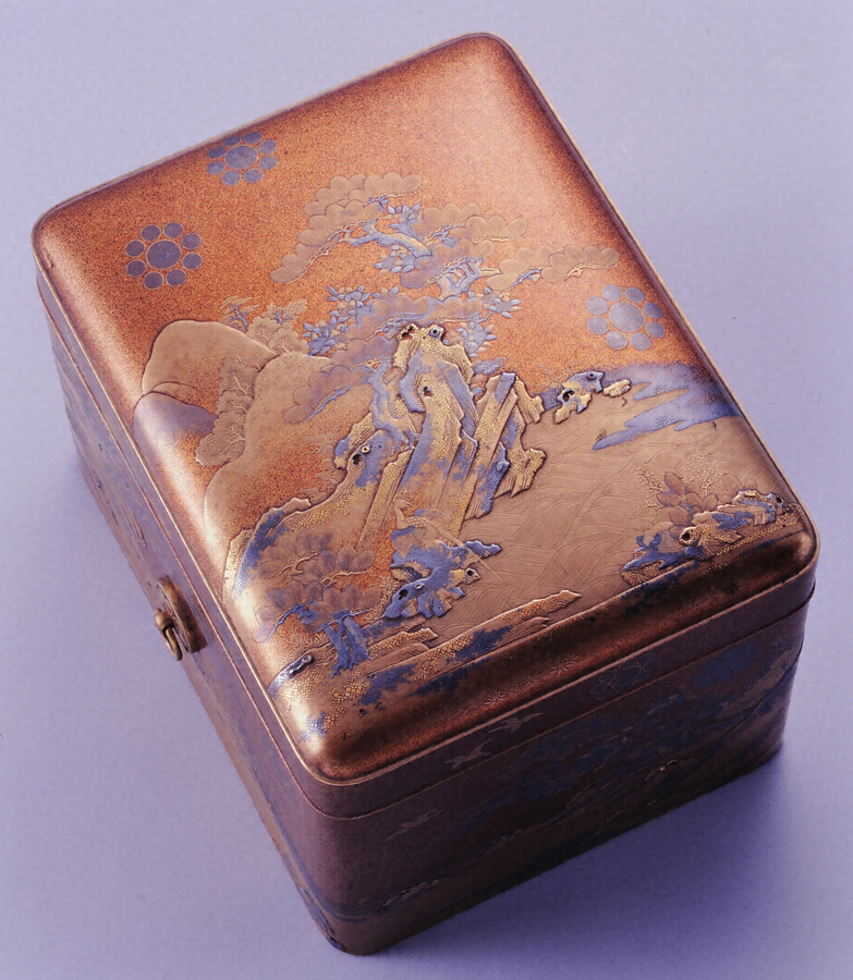 梨子地九曜紋散松橘山水蒔絵手箱をもっと見る