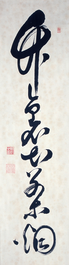 西条藩八代藩主である松平頼啓の書で、「竹裏出茶煙」と書かれている。松平頼啓は、六代藩主松平頼謙の三男として生まれ、長兄の七代藩主頼看が早逝したため、養子となり西条藩主となった。頼啓は、書画に堪能で、学問を好み、文化2(1805)年(推定)には陣屋の北に択善堂を創立している。本資料は頼啓のすぐれた筆跡を伺うことのできるものとして貴重である。西条藩松平家伝来。