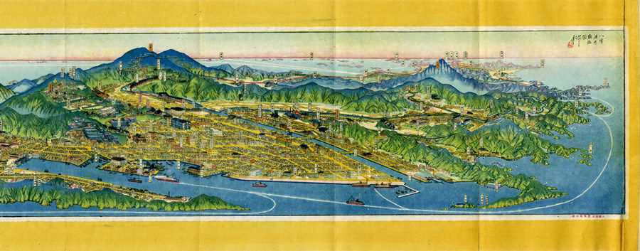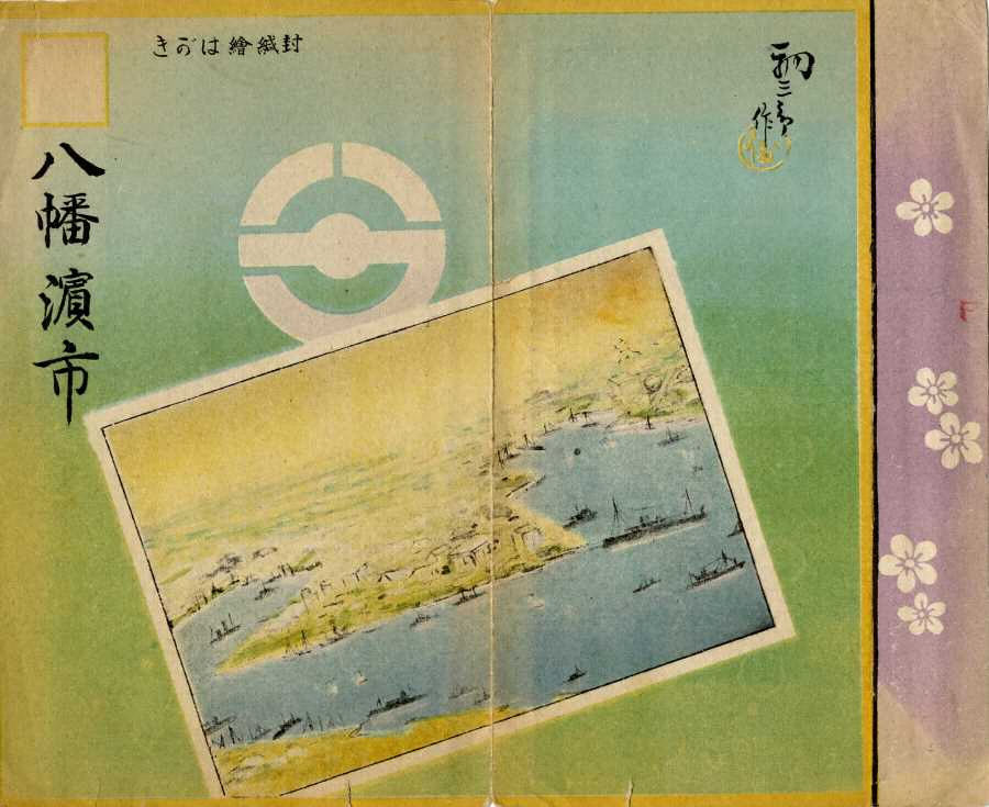 昭和10(1935)年、県下で四番目に市制を施行した。裏面には、「商工ノ都ト讃ヘラレ伊予ノ大阪ト謳ハレテ井ル」と記載されている。同14年、予讃線平野〜八幡浜間が開通した。