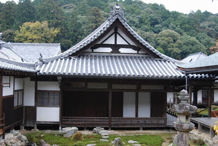 中院の庫裏であったもの。桁行六間、梁間三間半、東面し、周囲には広縁を廻らす。屋根は入母屋造本瓦葺。平面は二列構成で、表側は八畳間三室を連ね、背面側は一間幅とする。天井は棹縁天井とし、部屋境は筬欄間とする。庭園に面し、境内景観を形成している。