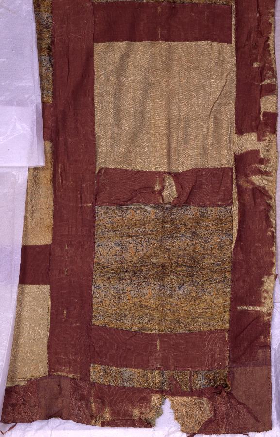 田相浅葱地雲気文錦、萌黄地花唐草文綾/条葉紫地羅:縦141.0 横328.5