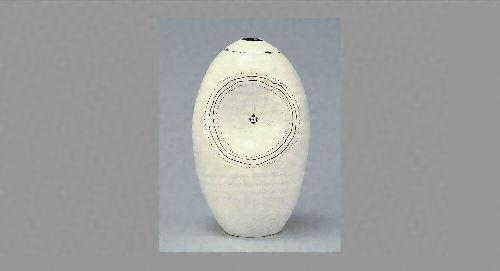 八木一夫が所属した走泥社は、用途を持たない“やきもの”を初めて作った前衛的な陶芸家集団です。八木が用途を持つ器制作からオブジェ制作に至ったのは、敗戦直後の1940年代後半から1950年代半ばのことです。作陶を始めた当初、八木は古い中国や朝鮮のやきものに関心がありましたが、絵付け意匠にクレーやピカソらとの共通項を見出していました。この作品は初期のもので、八木が鉄象嵌や掻き落しを主な技法としつつ、表面にクレーやピカソ、ミロのような抽象絵画の意匠を施した白化粧の壺を盛んに制作した頃のものです。八木一夫は、大正7(1918)年京都市東山生まれ。父は陶芸家の八木一艸。昭和6(1931)年に京都市立美術工芸学校(現・京都市立芸術大学)へ入学し、昭和12(1937)年同校卒業後、商工省陶磁器試験場に伝修生として入ります。沼田一雄主催の日本陶彫協会に入会し、陶彫を学び、昭和21(1946)年には青年作陶家集団結成に参加しましたが、昭和23(1948)年に同集団が解散し、同年7月に山田光、鈴木治、松井美介、叶哲夫とともに走泥社を結成しました。昭和54(1979)年2月28日60歳で没。
