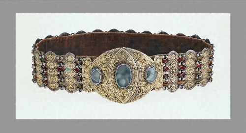 銀、鍍金、縞瑪瑙、革