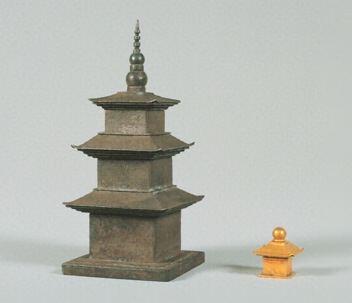 銀製層塔形舎利容器及び金製内容器