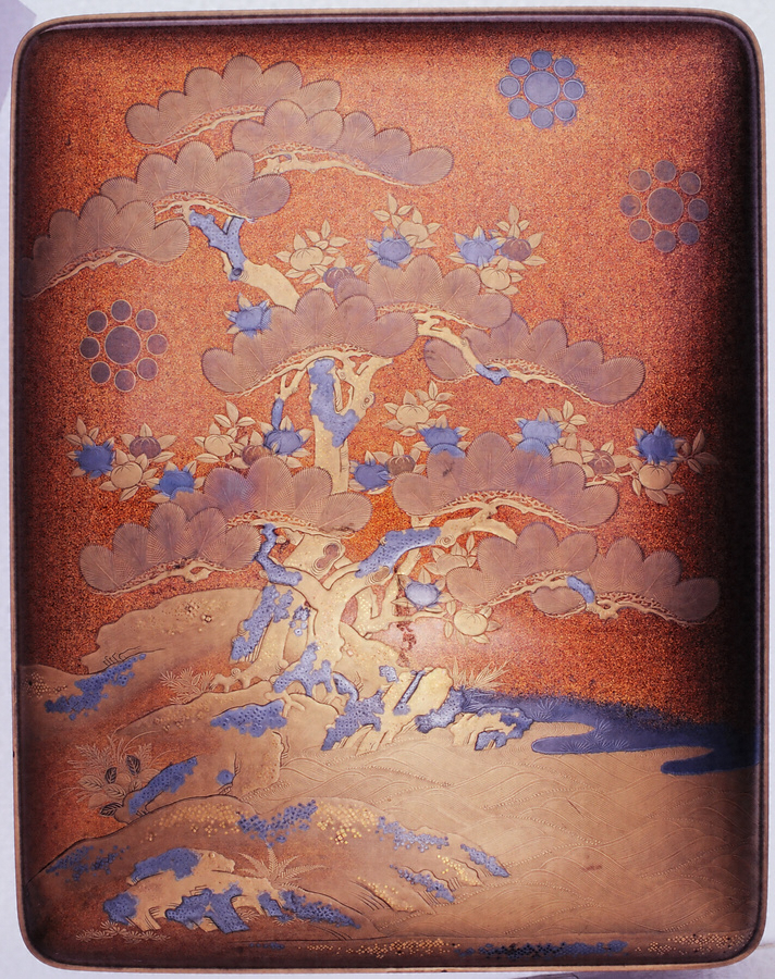 梨子地九曜紋散松橘蒔絵大角赤手箱