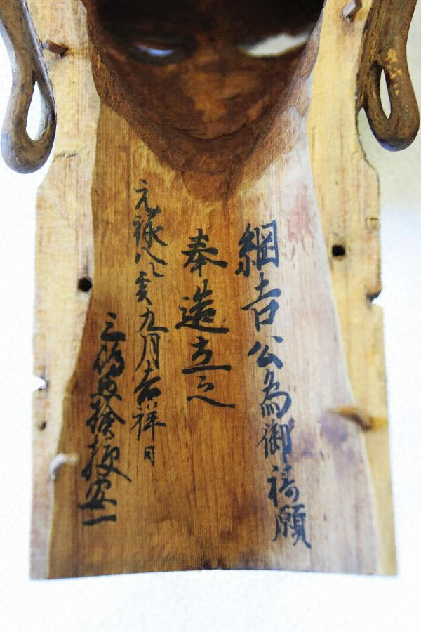 大聖寺の奥本尊として安置されてきた。平成21年に像の解体修理を行った際に,頭部内から墨書が発見され,二代目関東惣検校三嶋安一が将軍徳川綱吉の健康を祈願して造立した像であることが判明した。