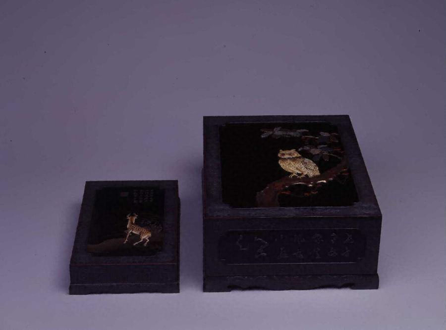 柏木菟蒔絵料紙箱及春日野蒔絵硯箱〈小川破笠作/〉