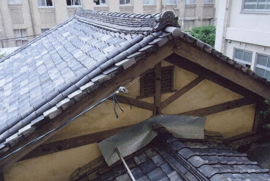 南館の北面西寄りに建ち南北に出入口を開く。木造平屋建、桁行五・五メートル梁間五・五メートル、切妻造桟瓦葺、妻入である。妻面にトラスの架構を現し、鎧板の換気窓を設けるなど洋風意匠でまとめる。昭和初期における学校の附属建物の姿を伝える。