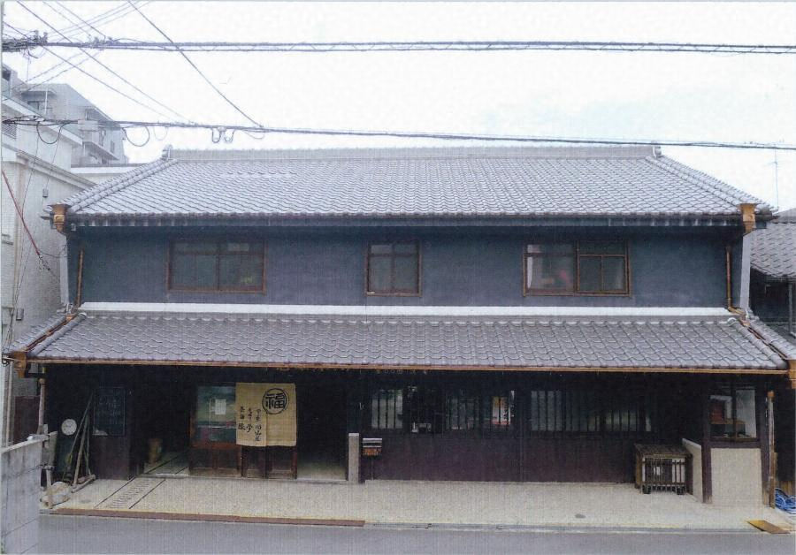 通りに東面する間口六間の町家で、二階正面を黒漆喰塗とし両端に袖壁を設ける。一階内部は前面を広いミセとして背面北寄りに座敷を配し、南寄りの通り土間に敷地奥の倉庫にのびるトロッコレールを残す。近世以来商工業の拠点として栄えた茨木の面影を伝える。