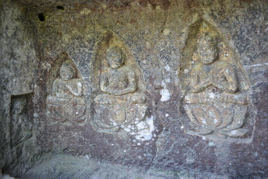 東峰村土師山から東に延びる尾根の端部、大肥川に面した輝石安産岩の崖面に位置し、崖面下端部の村道から3mほどの高さにある。