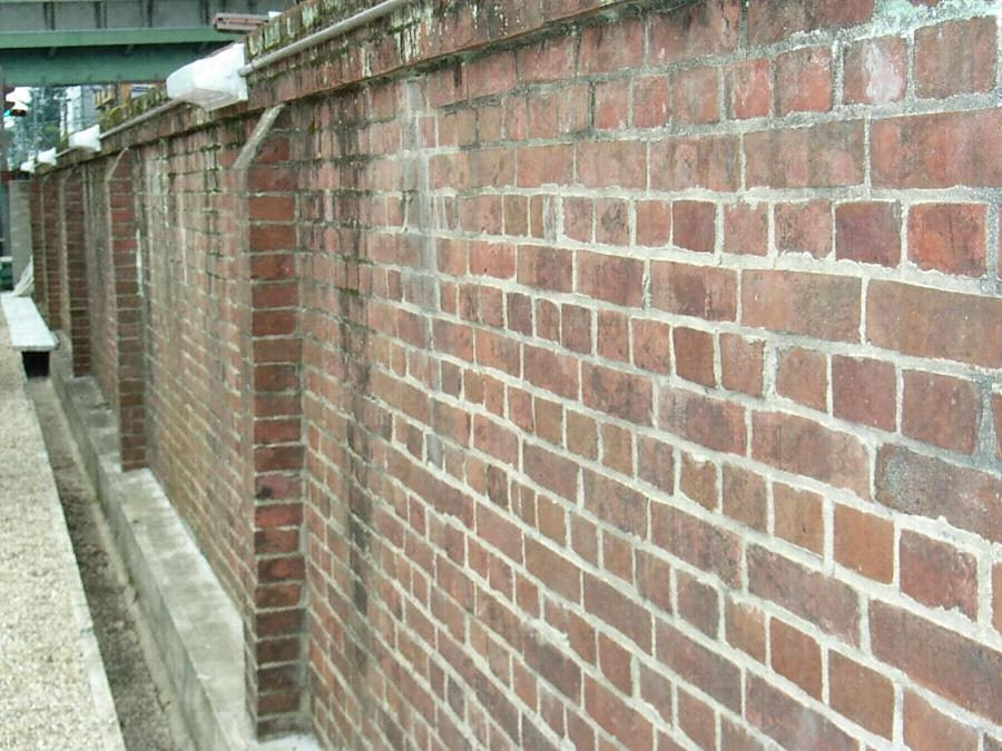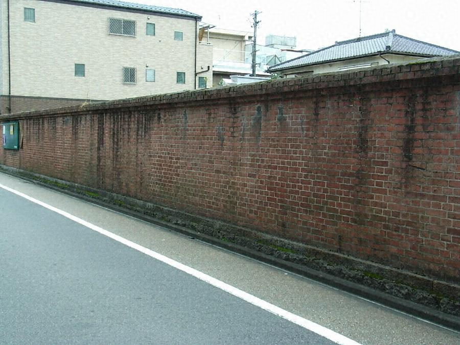 敷地北側、主税町筋沿い建つ。煉瓦造で、延長29m、高さ2.1m、厚さ35㎝。切石を2段積み、その上にイギリス積とし、上部は笠石状に張り出す。敷地内側には3.7m間隔で、幅22㎝、出12㎝の控柱を付ける。主税町の伝統的な町並みを構成する一要素。
