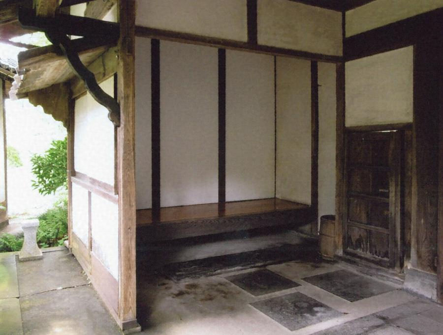 主屋玄関の正面、通り沿いに建ち、桁行7.9m梁間3.0m、木造平屋建、切妻造桟瓦葺である。中央に間口2.4mの門を開き、北側に潜りを吊る。門の北室は開放的なつくりで腰掛を設け、南室は2畳敷の和室でトコを備える。格式のある表構えを形成している。