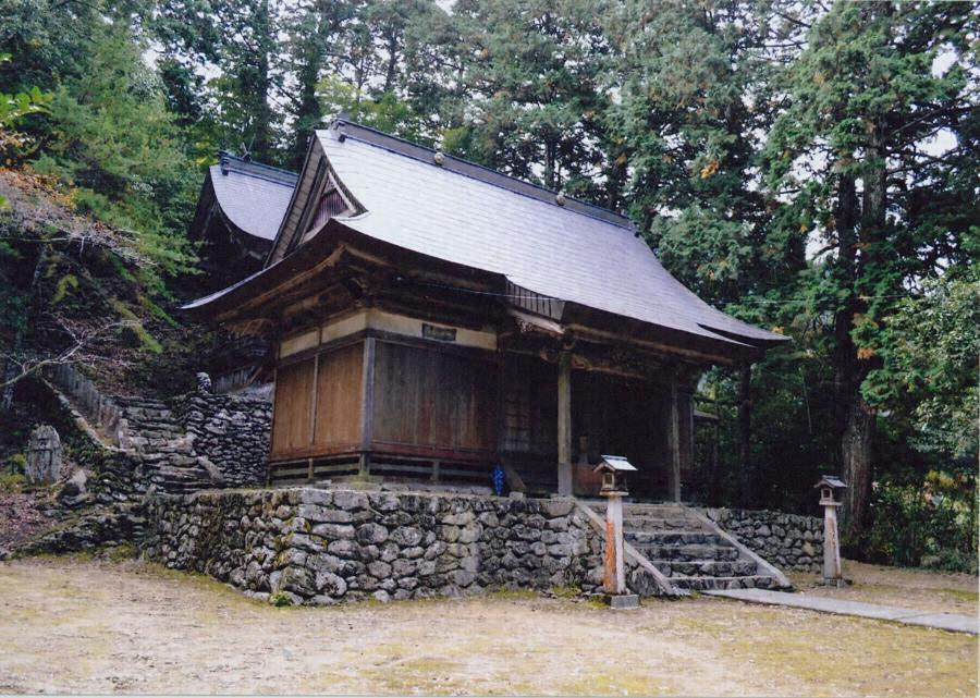 本殿前の一段低い位置の石積基壇上に建つ。桁行三間梁間二間、入母屋造で、内部は畳敷で三室に分かれ、欄間に瓢箪や竹の透彫を嵌める。背面張出しに内拝殿と物入を設ける。木鼻も含めた向拝虹梁彫刻に巻付く龍を表す技法などに、本殿と共通の意匠を見せる。