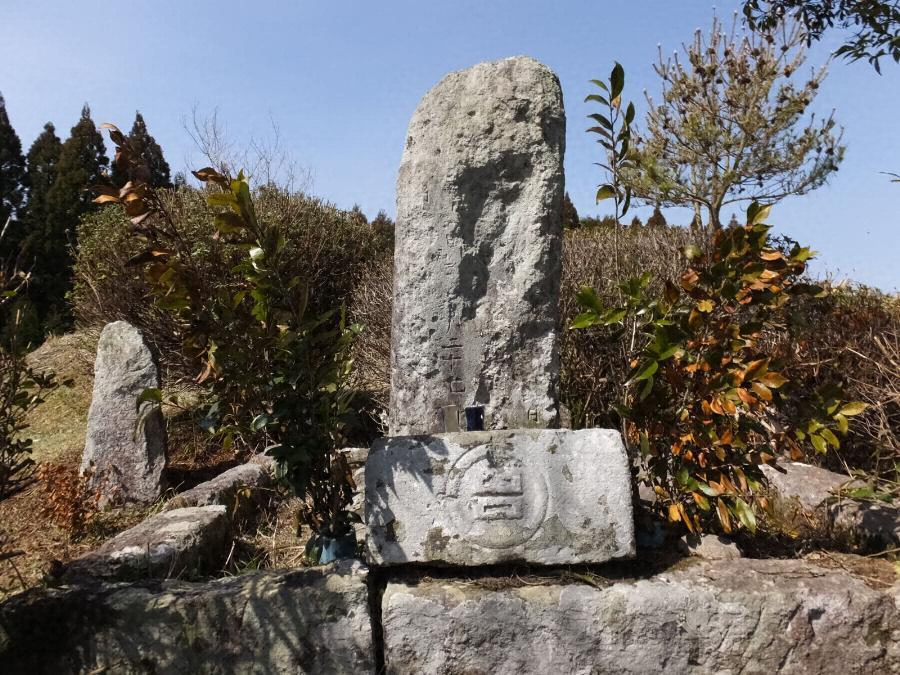 宮内式部の墓には、「釈梵居士 慶長癸巳六月廿七日 十五歳 宮内式部佐衛門戦死」とある。高さ98㎝、幅35㎝。