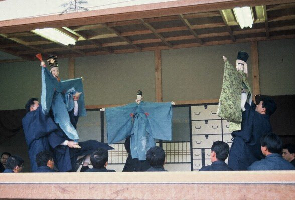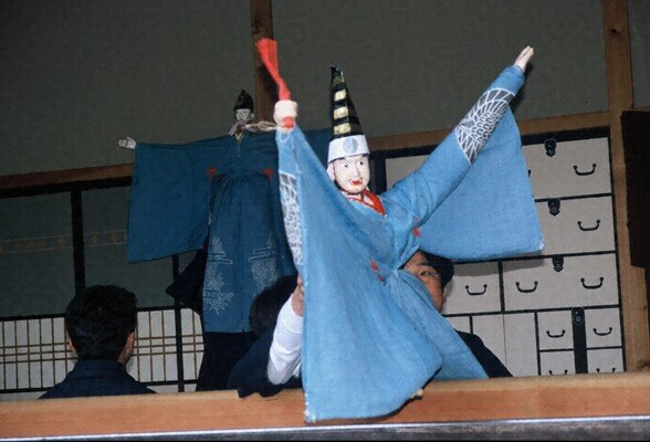 本件は、長野県南佐久郡小海町の親沢区に伝わる操り人形戯【にんぎょうぎ】で、親沢諏訪神社の春の祭礼で演じられている。