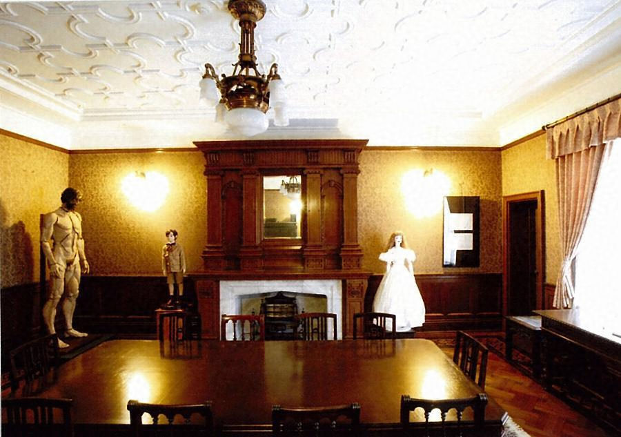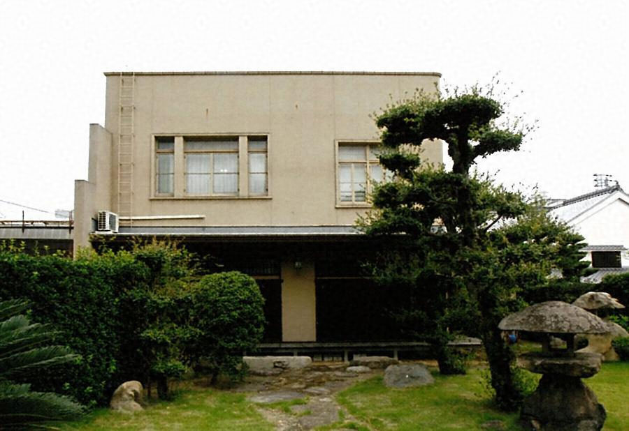 本店の西に建つ、もと鎌田醤油社長宅。外観は陸屋根、タイル張とした幾何学的で端正な意匠だが、内部は一階に上質な和風座敷、二階に暖炉を設えた本格的な洋室を配する。戦前期モダニズムの影響が認められ、県内の鉄筋コンクリート造住宅として最初期の遺構。