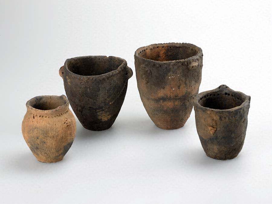 続縄文時代前半、宇津内IIa式期の墓坑(470号土坑)から出土したもの。琥珀玉、5個の土器、各種の石器など、この遺跡で見つかった中では最も豊かな副葬品をもつ墓である。