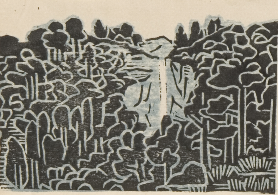 版画集『創作木版・南紀風景』 4 旧参道より見たる那瀑