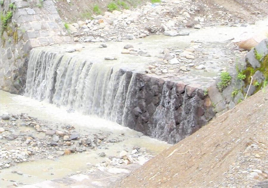 第一号床止より約五〇メートル上流、左支子持沢との合流点の直下に築かれる。堤長四五メートル、堤高三・六メートルの重力式堰堤で、右袖上部に「堰堤1」と陰刻した銘板を付ける。本流と地滑り著しい支渓からの土砂を受ける、鎌倉沢川砂防の基幹的な堰堤。
