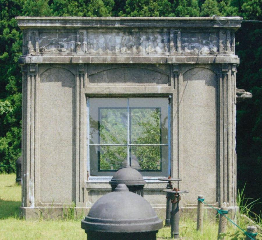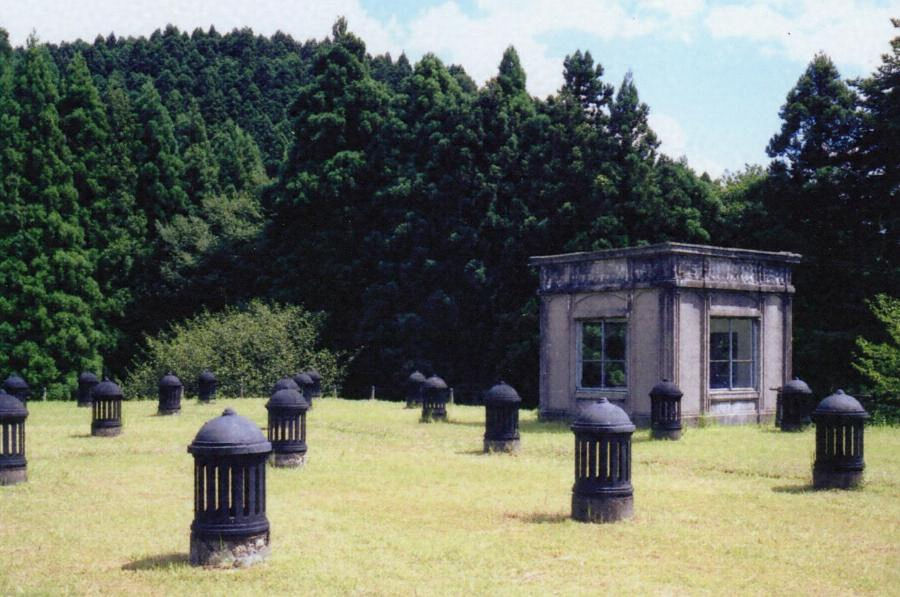 浄水を貯える施設で敷地北端の丘の上に位置する。コンクリート造、東西24m南北28m深さ4.2mの二池が東西に並ぶ。上部の盛土上に36基の換気筒を配し、南面中央に鉄筋コンクリート造平屋建で軽快な意匠の機械室を置く。