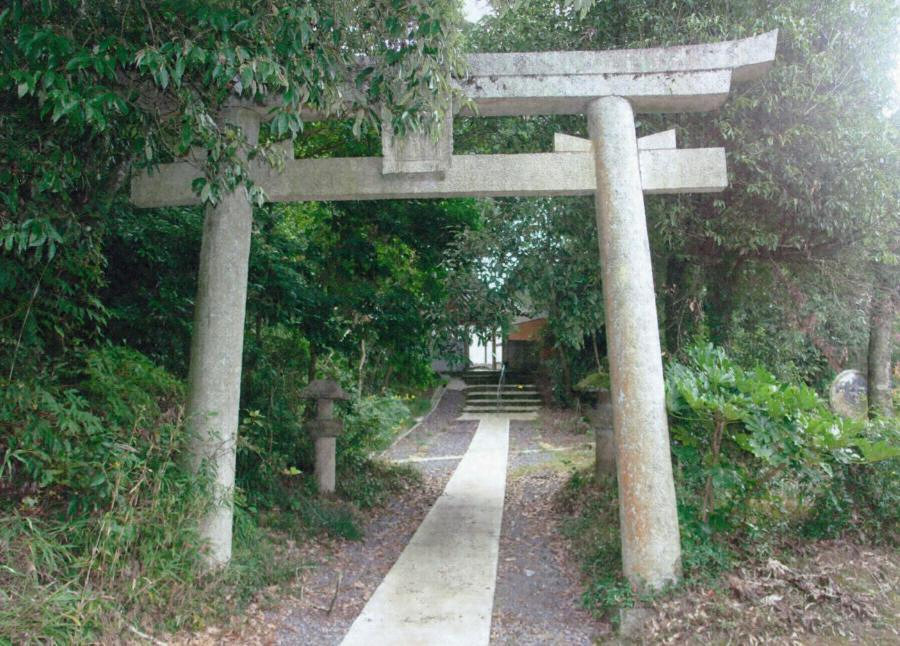 西門へと延びる西参道の入口に建つ。石造の明神鳥居で、幅3.1メートル高さ3.9メートル。径36センチメートルの円柱を内転びに建て、貫と島木、笠木で固める。嶋木や笠木はほぼ同じせいで、全体に反りをもたせ、安定感のある姿をつくる。
