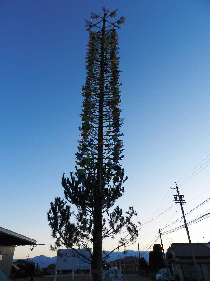 正月にオンベを切り、柱に飾って立て、柱を倒した後にオンベを配る、男子小学生を中心とした行事である。もともとは1月14日に立て、20日に倒した小正月の行事であるが、今は3丁場申し合わせのうえで、1月5日前後に立て、成人の日(1月の第2月曜日)ごろに倒している。