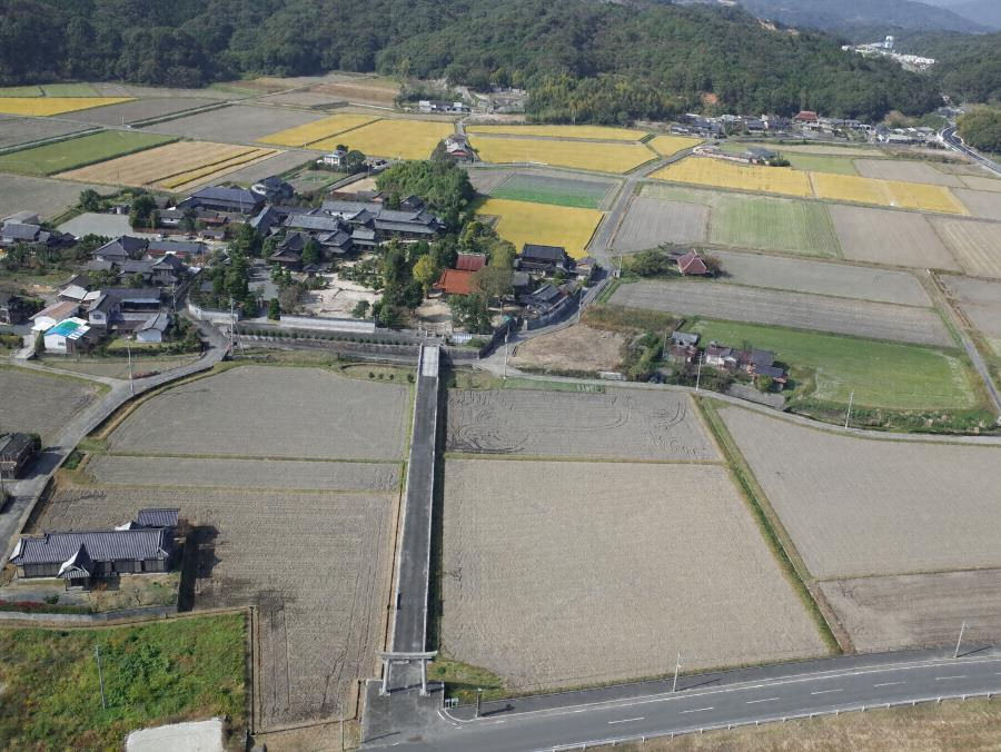 旧藏内氏庭園は,福岡・大分県境の筑紫山地に水源を発し,周防灘へ注ぐ城井川(きいがわ)の左岸の田園地帯に位置する。藏内氏は江戸時代に庄屋を務めた家柄で,明治中期から昭和中期にかけて炭鉱及び鉱山の経営により財を成した。庭園を含む現存する屋敷などは,明治中期から昭和初期にかけて本邸として整えられた。