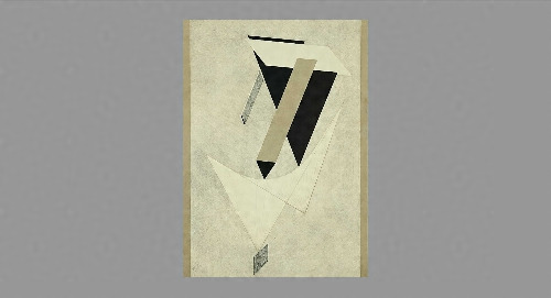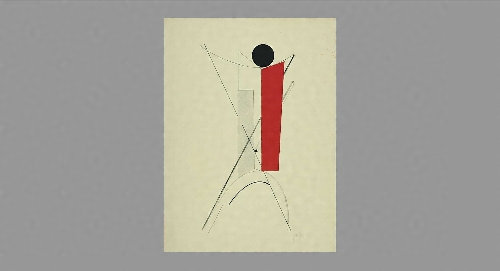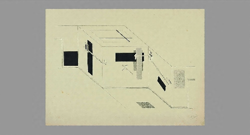 1919年,リシツキーはプロウンと名付けた絵画を初めて制作しました。プロウンとは,素材を道理に従って構築することで形態が創造され,空間がコントロールできるとするリシツキー独自の造形原理とこれに基づく作品のことで,建築や都市までも対象にしています。