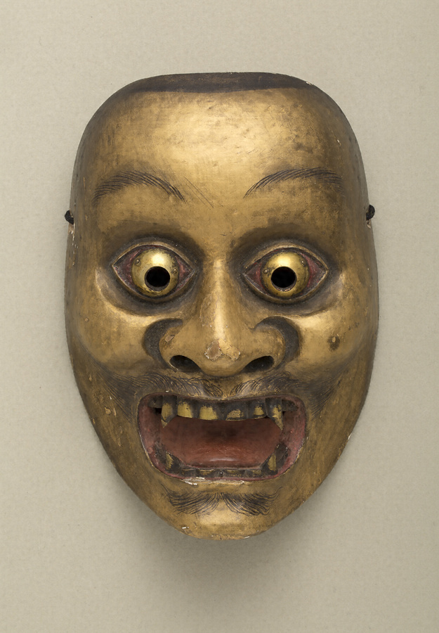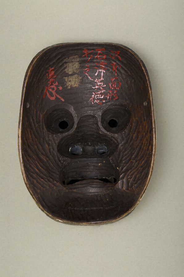 「泥小飛出」の面は、稲荷明神の使いである霊狐など、超能力を持った動物の神霊面。俊敏な演技を必要とする役に適した面である。「泥」とは金泥彩色のことで、通常の赤系彩色のものより格上に扱って、特殊演出に用いる。面裏には「以本面形/石津英徳/打之/直元(花押)」と朱漆書きがある。